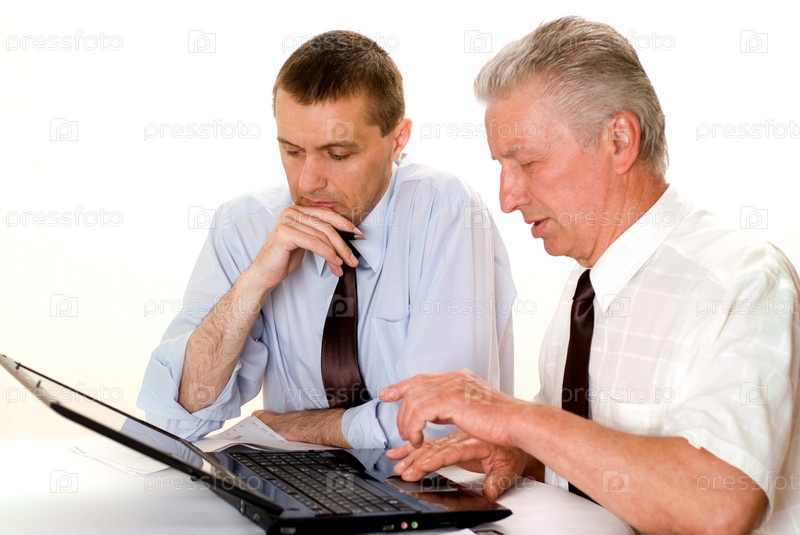 Два бизнесмена, работающие на ноутбуке