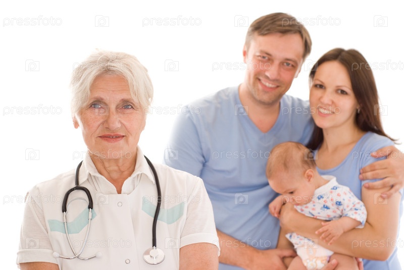 Молодая семья с ребенком на приеме у педиатра
