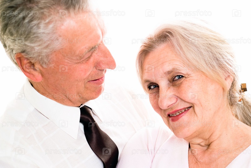 Счастливая пожилая пара на белом фоне