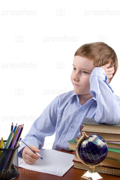 Школьник выполняет домашнее задание