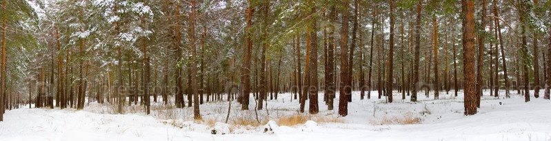 Зимний сосновый лес. Панорама