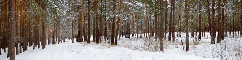 Зимний сосновый лес. Панорама
