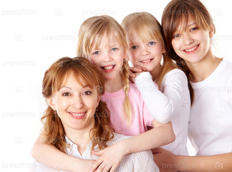 Счастливая семья на белом фоне