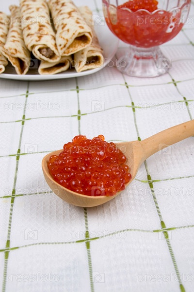 Блинчики с красной икрой. Русский праздничный стол на Масленицу