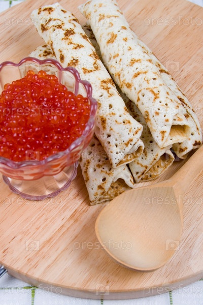 Блинчики с красной икрой. Русский праздничный стол на Масленицу