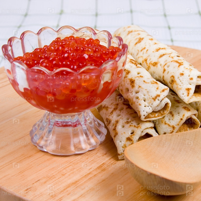 Блинчики с красной икрой. Русский праздничный стол на Масленицу