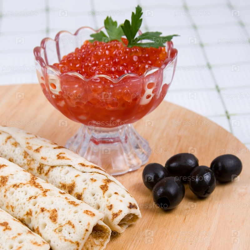 Блинчики с красной икрой. Русский праздничный стол на Масленицу