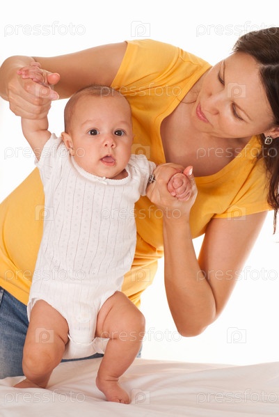 Мама учит дочку ходить