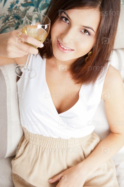 Молодая красивая женщина с бокалом вина крупным планом