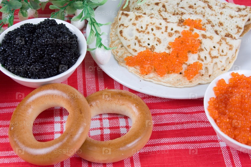 Блинчики с красной и черной икрой. Русский праздничный стол на Масленицу