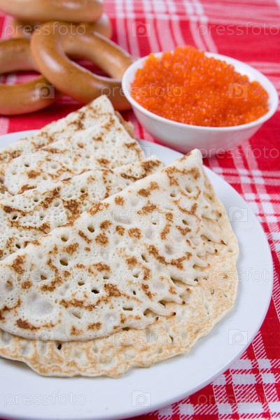 Блинчики с красной икрой. Русский праздничный стол на Масленицу