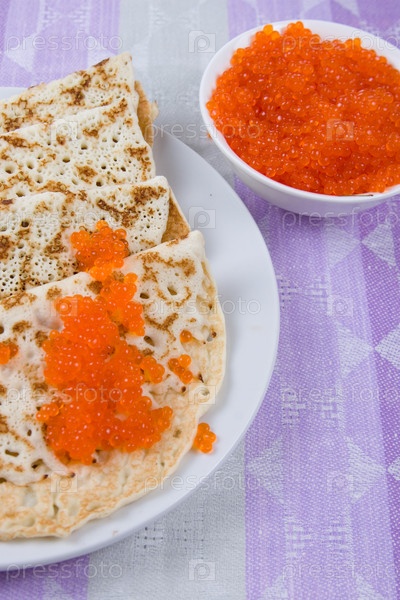 Блинчики с красной икрой. Русский праздничный стол на Масленицу