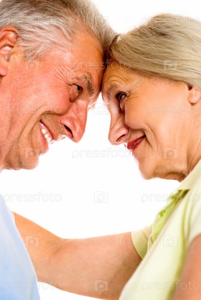 Счастливая пожилая пара на белом фоне