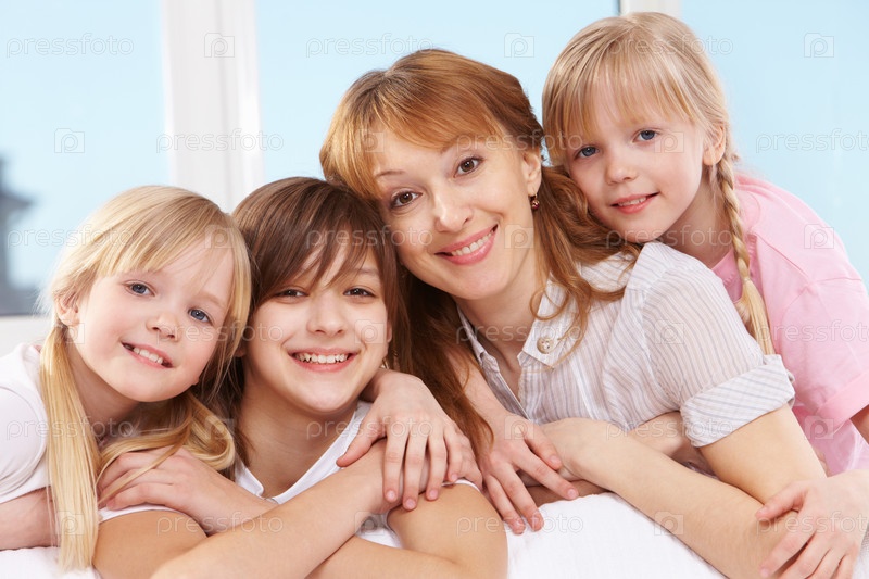 Счастливая мать с тремя дочерьми