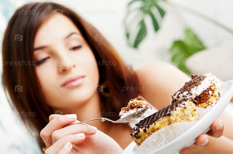 Молодая красивая женщина с десертом крупным планом