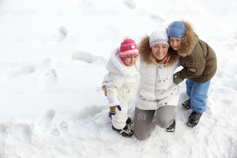 Счастливая семья на зимней прогулке
