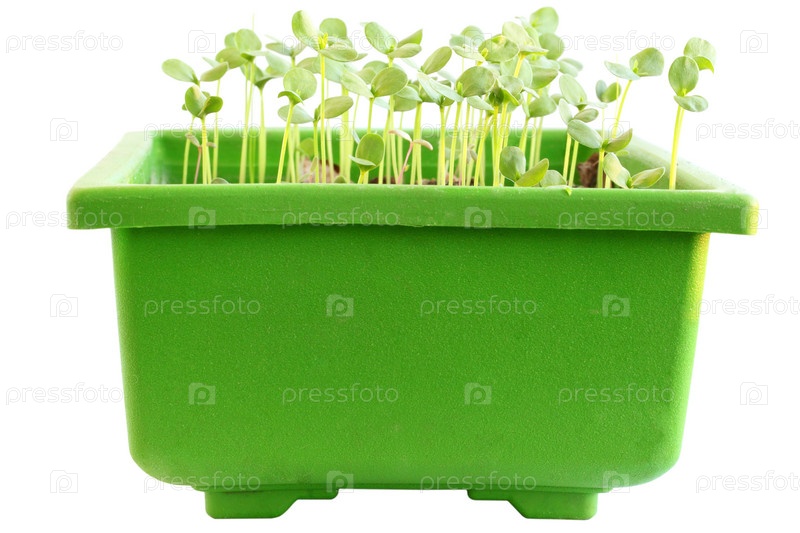 Молодые побеги льна в контейнере