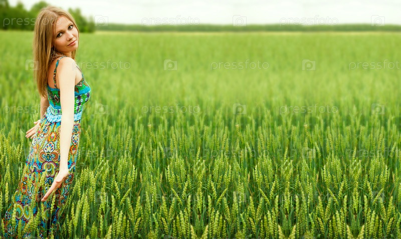 Молодая красивая женщина в поле