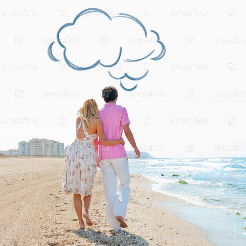 Молодая мечтающая пара на морском побережье
