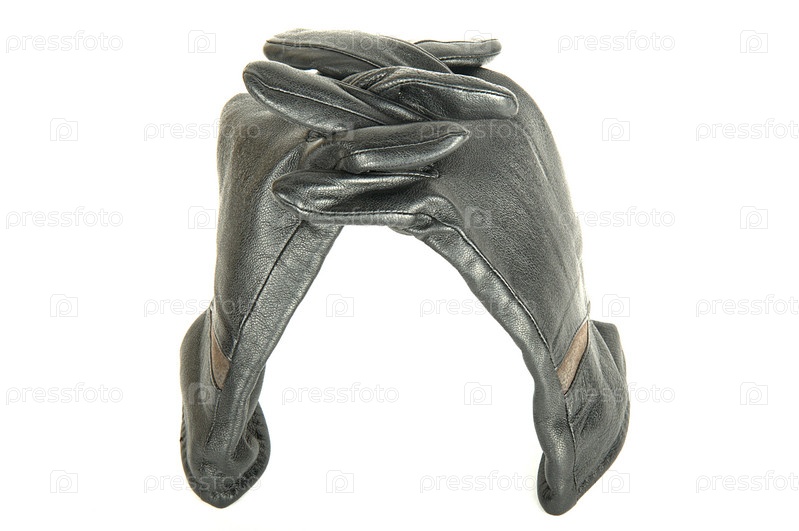 Черные кожаные перчатки с переплетенными пальцами