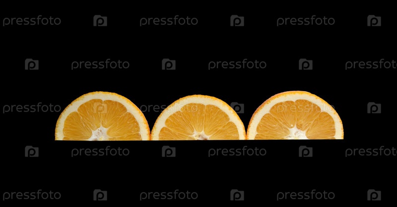 Три половины апельсина на черном фоне