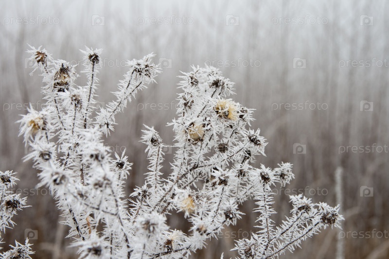 Иней на сухом растении
