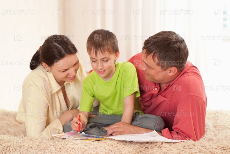 Семья из трех человек дома
