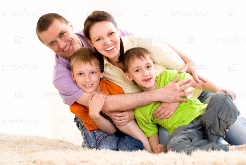 Счастливая семья на ковре