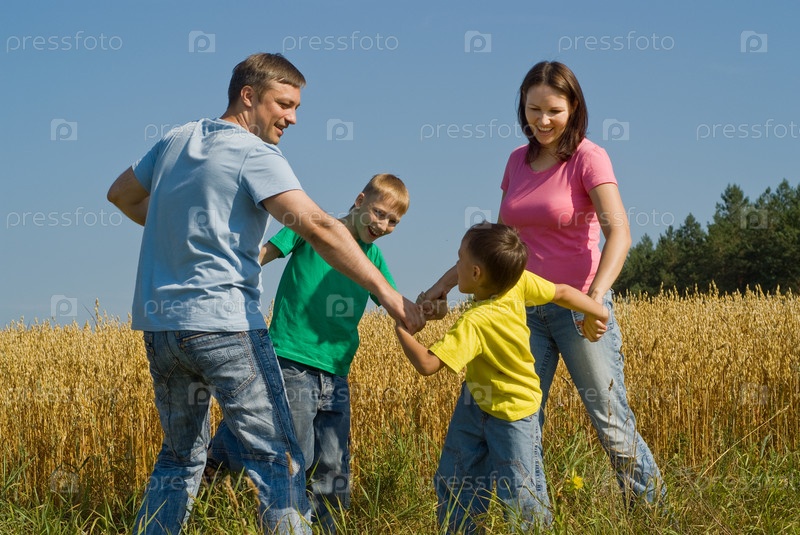 Счастливая семья отдыхает на природе летом