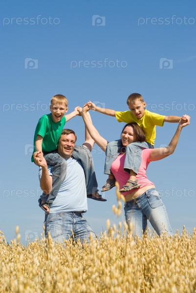 Счастливая семья играет на природе