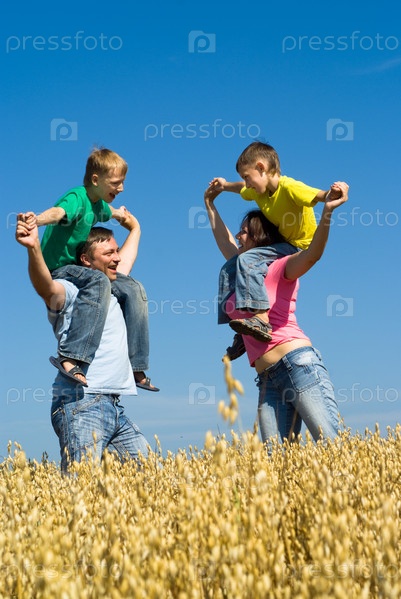 Счастливая семья играет на природе