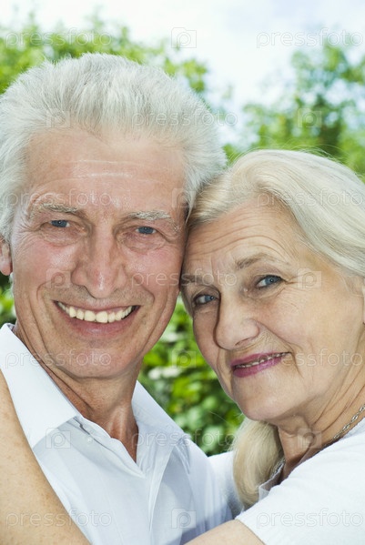 Пожилая пара в парке летом