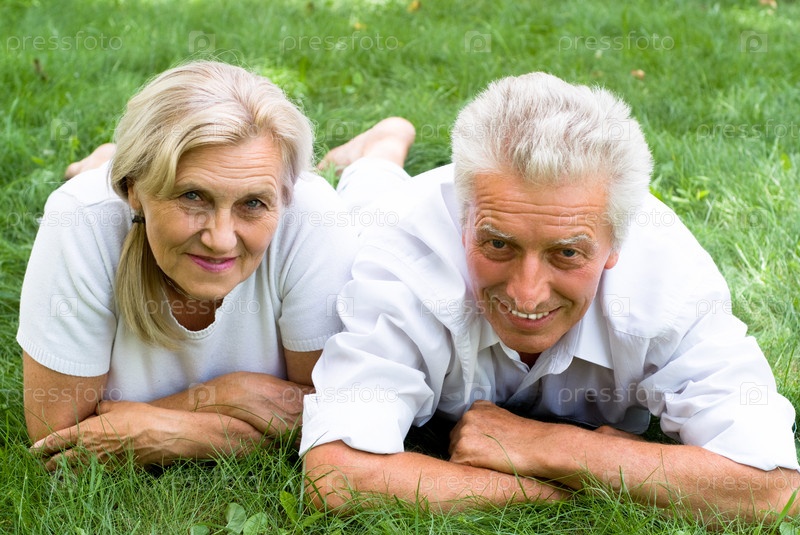 Пожилая пара в парке летом