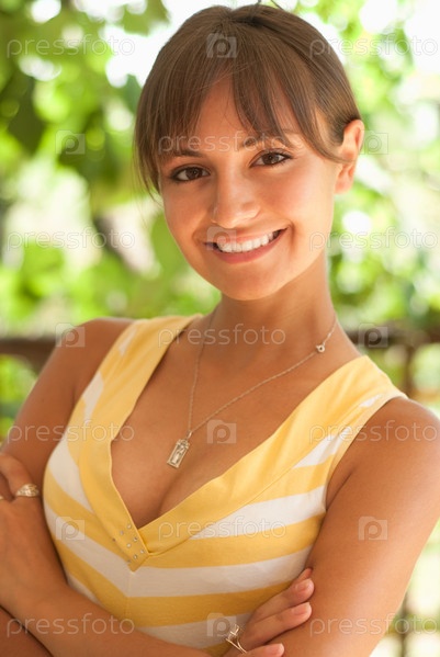 Красивая улыбающаяся девушка в летнем парке