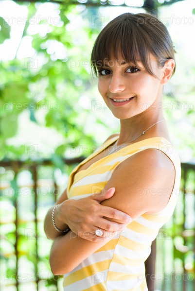 Красивая улыбающаяся девушка в летнем парке