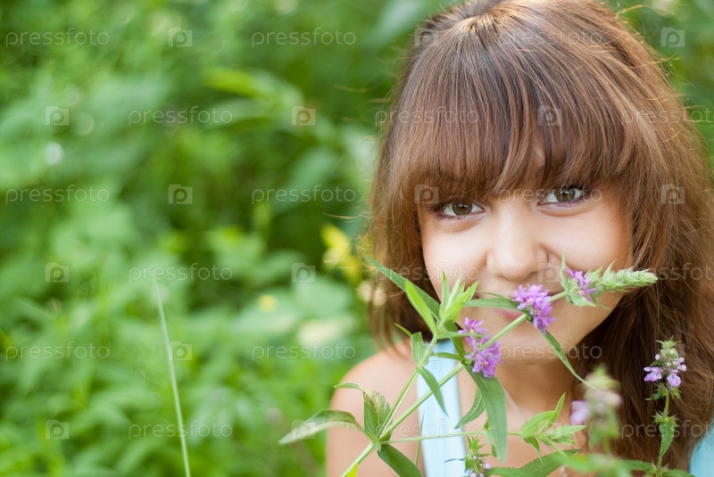 Счастливая девушка в летнем парке