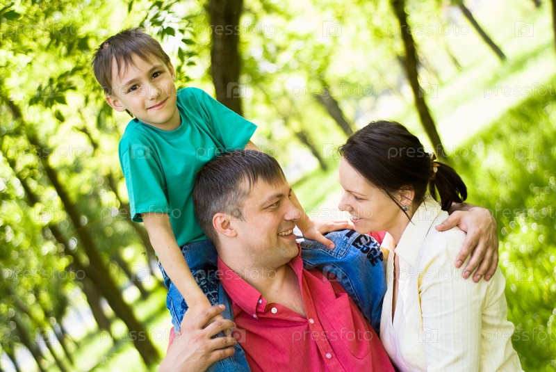 Семья из трех человек на природе