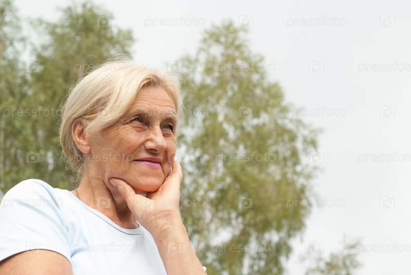 Красивая пожилая женщина, смотрящая в небо