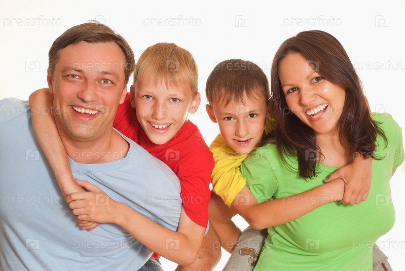 Семья из четырех человек на светлом фоне