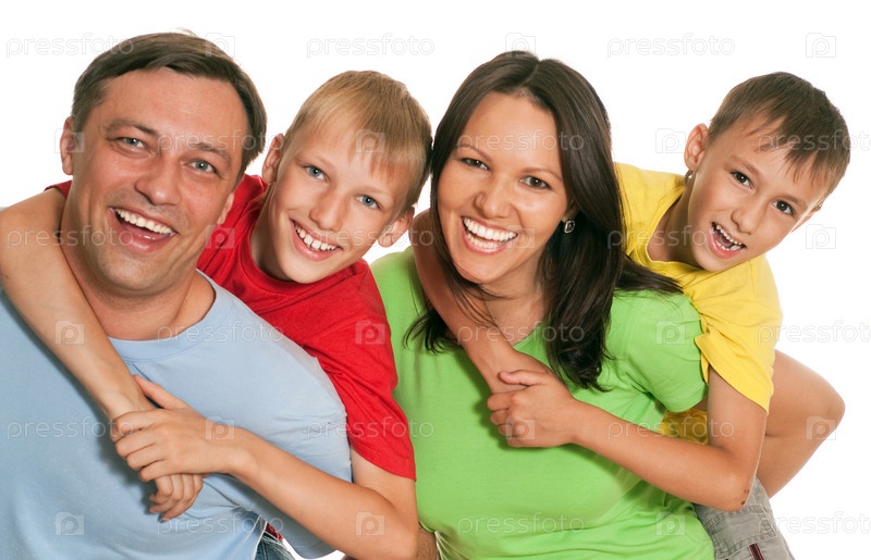 Семья из четырех человек на светлом фоне