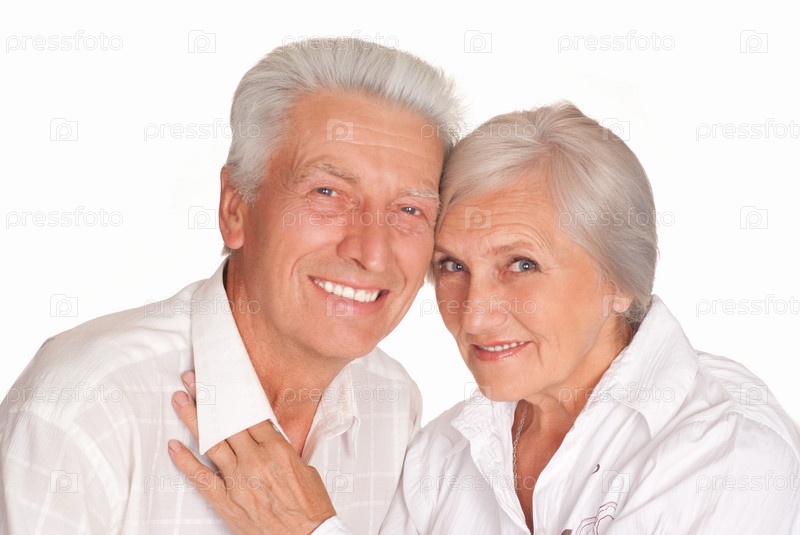 Счастливая пожилая пара на белом фоне