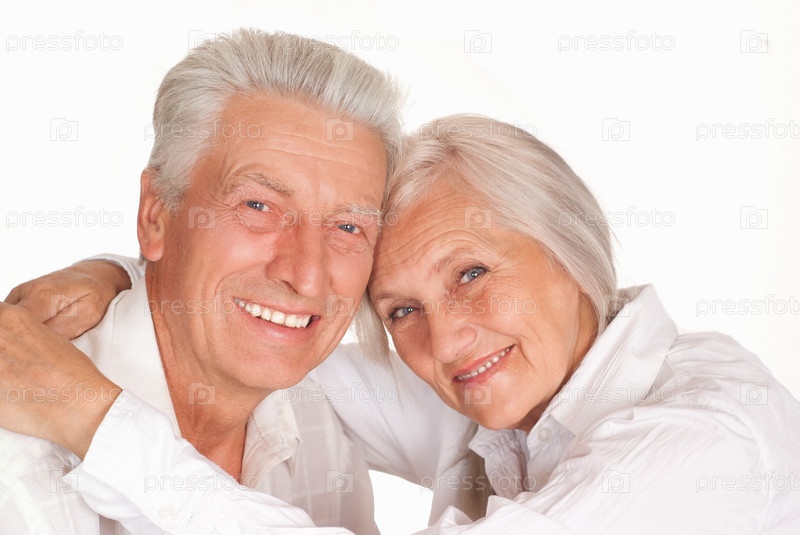 Счастливая пожилая пара на белом фоне