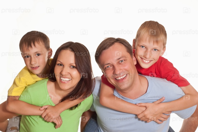 Семья из четырех человек на светлом фоне