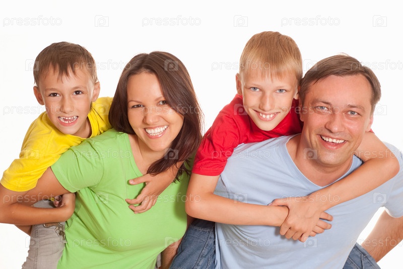 Семья из четырех человек на светлом фоне