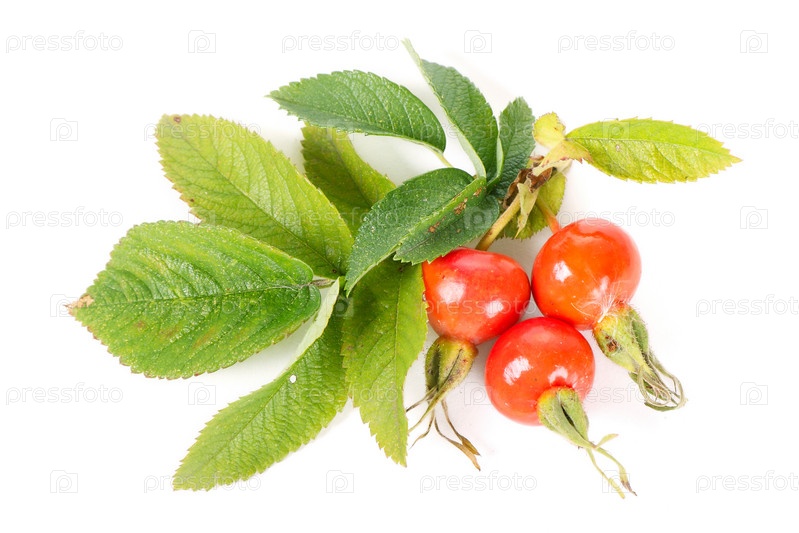 Ветка шиповника с ягодам, изолировано на белом