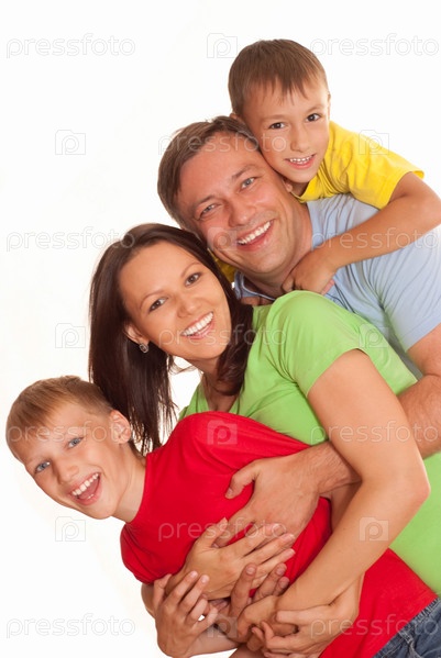 Семья из четырех человек на светлом фоне
