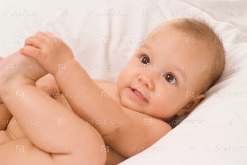 Ребенок на белой постели