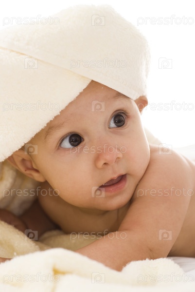 Ребенок на белой постели