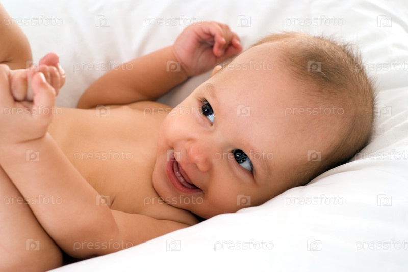 Ребенок на белой постели