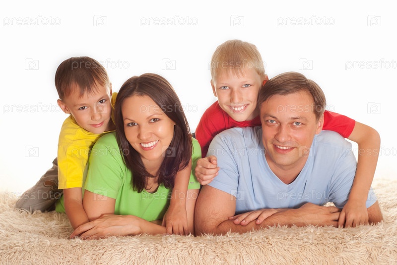 Семья из четырех человек на светлом фоне